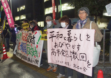 「WE WANT OUR FUTURE」主催で11 月23日、首相官邸前で発言撤回と憲法の平和主義を守ろうと1700人が集会、11月25日は、憲法9条壊すな!実行委員会など37団体が呼びかけた緊急行動には500人が参加した。